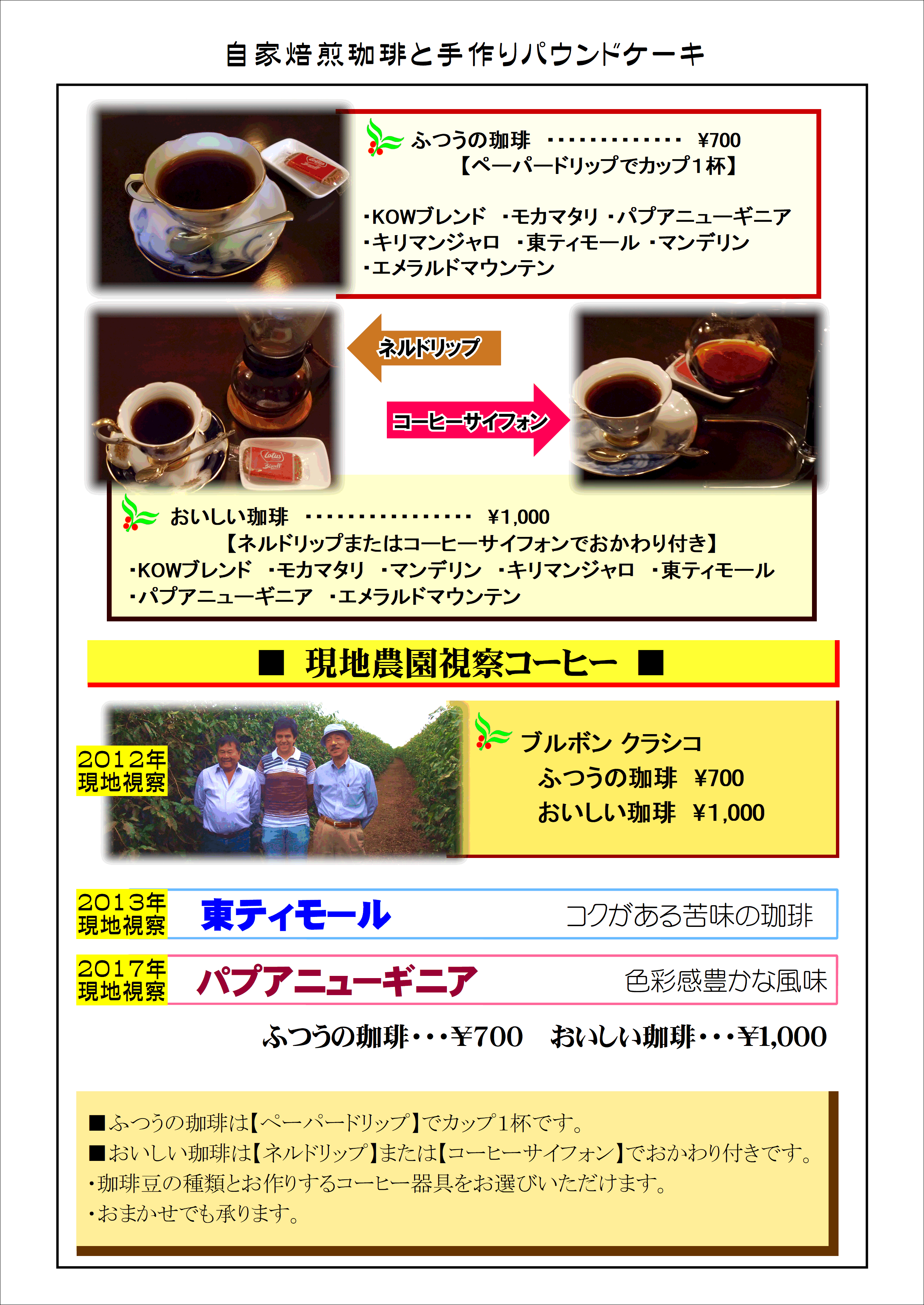 KOWはコーヒー豆セール期間中も喫茶営業をお休みいたします。各ページのカレンダーでご確認ください。