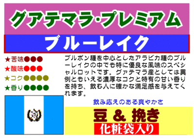 厳選した良質の豆です。香り高くバランスの良い風味が自慢です。